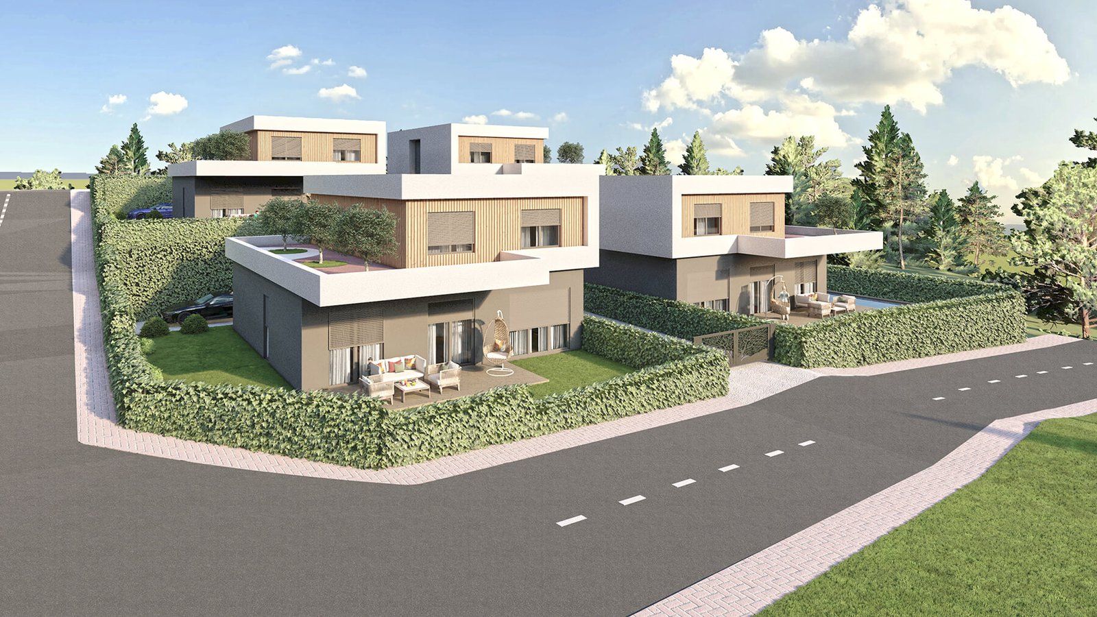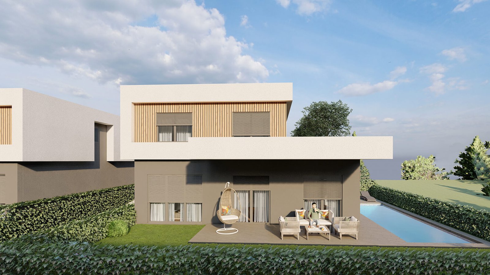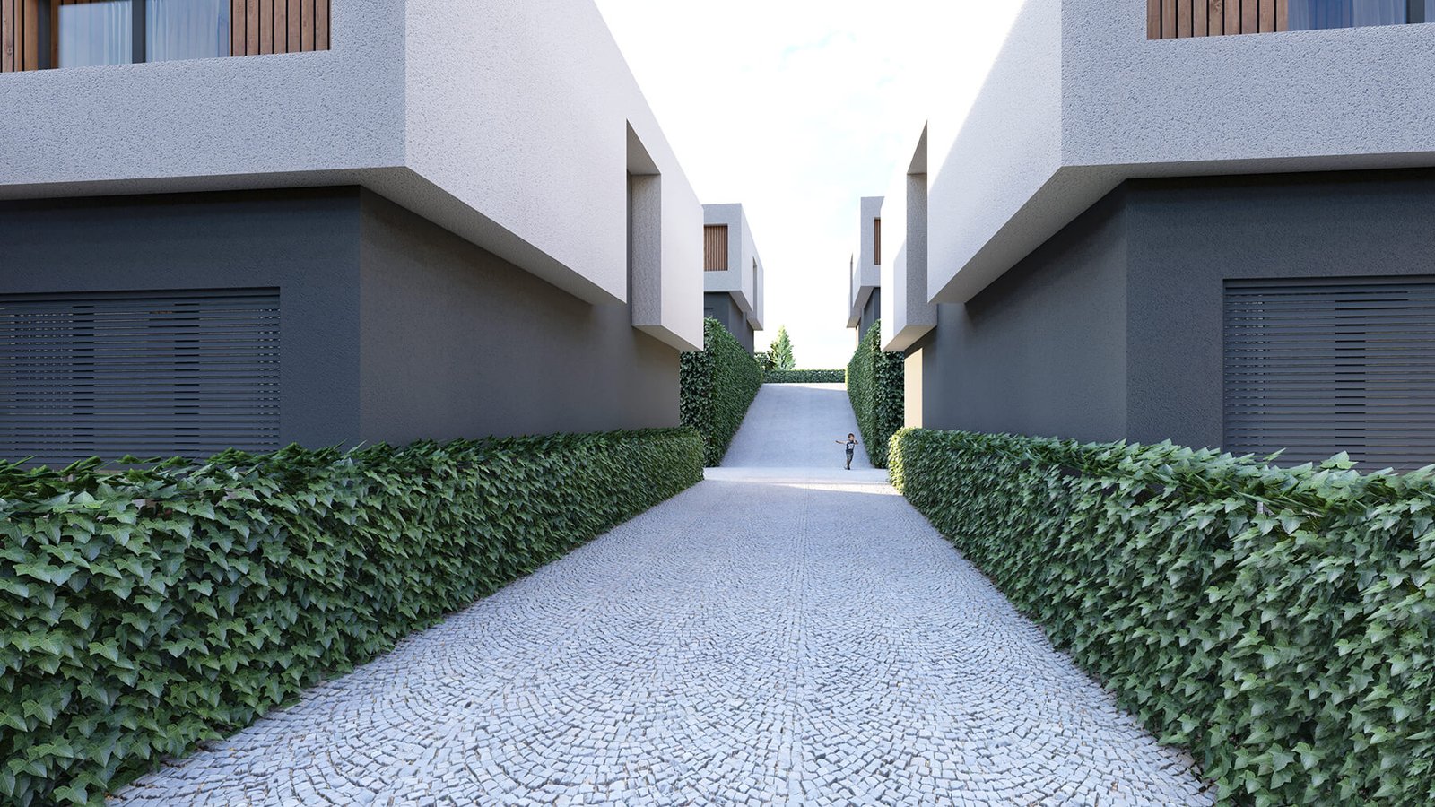 Merkezi konumda, yarı açık otoparkı ve özel yüzme havuzu olan site içerisinde 4 adet villadan oluşan 270 m2 Brüt Kullanım alanlı 2 katlı Eris Villaları